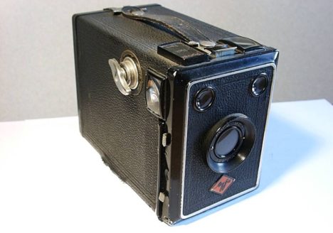 Name: Agfa Box 44 technische Daten: Hersteller: Agfa Gebaut: 1932 Verschluss: einfacher Schieber für Moment und Zeit Aufnahmen Objektiv: Meniskus 1:11 Beschreibung: Einfache Boxkamera für das Format 6X9 zwei Brillantsucher im Hochformat…