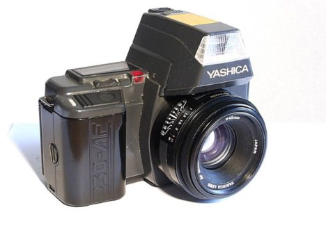 Name: Yashica 230-AF technische Daten: Hersteller: Kyocera, Japan Gebaut: 1987 bis 1991 Objektiv: Wechseloptiken Format: 135er Kleinbildfilm 24X36 Schlitzverschluss: Metalllamellen Schlitzverschluss 30 bis 1/2000, B Beschreibung: Motorfilmtransport Programmautomatik (Tv. Av. M) CDS…