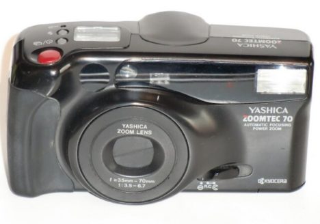 Name: Yashica Zoomtec 70 technische Daten: Hersteller: Kyocera, Japan Gebaut: 1993 Objektiv: 35 – 70mm/f3,5 – 6,7 Format: 135er Kleinbildfilm 24X36 Verschluss: Programm Beschreibung: Motorantrieb Autofokus mit AF Messwertspeicher 1m bis unendlich…