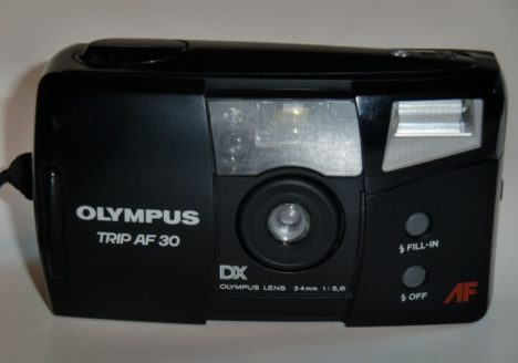 Name: Olympus Trip AF30 technische Daten: Hersteller: Olympus Kogaku, Japan Gebaut: 1996 Format: 135er Film 24X36 Optik: 34mm f=1:5,6 3 Linser Verschluss: feste Verschlusszeit 1/125 Beschreibung: eigenes Blitzlicht mit verschiedenen Möglichkeiten Blenden…