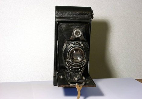 Name: Kodak technische Daten: Hersteller: Eastman Kodak Co. Gebaut: 1915 Objektiv: Topaz Boyer Paris 6,3/120 Verschluss: 1/25, 1/50, B & T Entfernungseinstellung: 2,5; 8; 30m Format: Planfilm 6X9 Nr.116 Beschreibung: Laufbodenkamera Brillantsucher…