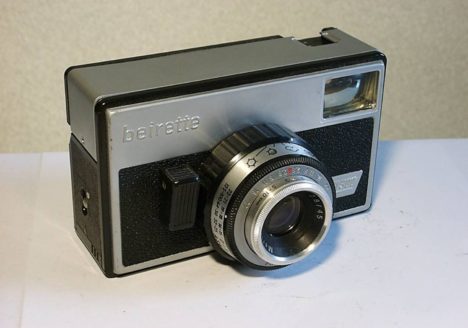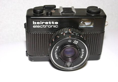 Name: beirette electronic technische Daten: Hersteller: VEB Pentacon Gebaut: 1981 Optik: Meritar 2,8/42 Format: 135er Film 24X36 Verschluss: Halbautomatische Kamera 4 bis 1/500 sec Beschreibung: Schnellspannhebel Symbole oder Einstellung mit den Blendenzahlen,…