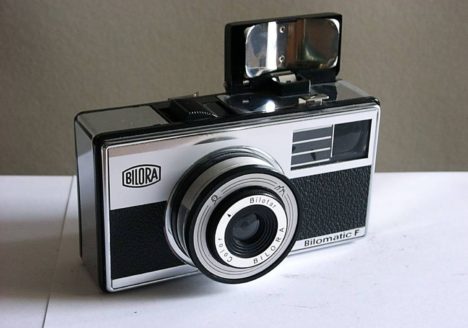 Name: Bilomatic F technische Daten: Hersteller: Bilora, Kürbi & Niggeloh, Radevormwald Format: Kassettenfilm Negativformat: 28 x 28 Baujahr: 1966 Objektiv: Color Bilotar 11/40 unvergütet Verschluss: 1/50 1/100 Beschreibung: Sucherkamera Blitzlicht mit einer…