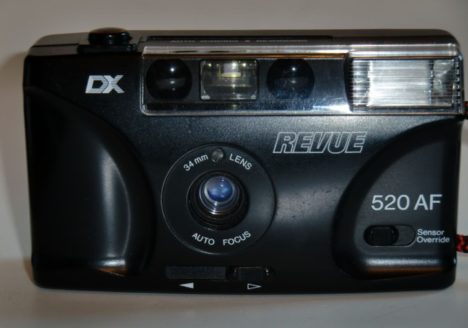 Name: REVUE 520 AF technische Daten: Hersteller: Revue Quelle, Fürth Gebaut: 1989 Objektiv: Autofokus 3,5/34 Format: 135er Film 24X36 Verschluss: automatisch Beschreibung: Blitz automatisch Leuchtrahmensucher mit Parallaxenausgleich Motortransport Winder automatisch Filmsichtfenster DX-…