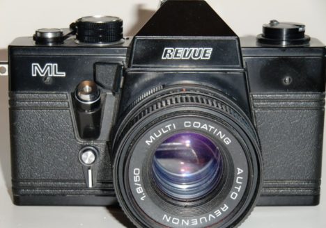Name: Revue ML technische Daten: Hersteller: VEB Pentacon Dresden Gebaut: 1969 – 1970 Format: 135er Film 24X36mm Objektiv: Wechseloptiken M42 Schlitzverschluss: Metalllamellen 1 bis 1/1000 B, Blitz (1/125), Blitzlampen, (1/30) Beschreibung: TTL…