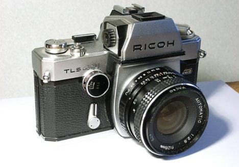Name: RICOH TLS 401 technische Daten: Hersteller: Riken Optical LTD, Tokio Gebaut: 1968 Objektiv: Wechseloptik M42 Format: 135er Film 24X36 Schlitzverschluss: Metalllamellen 1 bis 1/1000, B Beschreibung: Einäugige Spiegelreflexkamera 2 Suchersysteme Schnellspannhebel…
