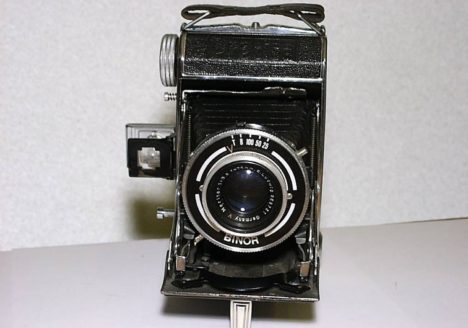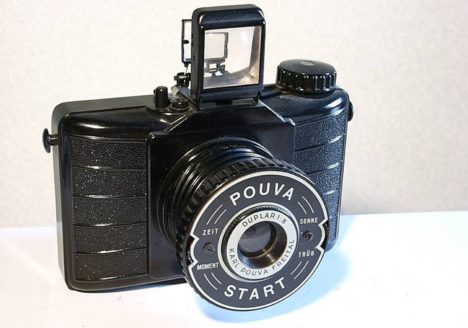 Name: Pouva Start 1 technische Daten: Hersteller: Karl Pouva Freital Gebaut: 1952 Objektiv: Duplar 8 (Sonne u. Trüb) Format: 120er Rollfilm 6X6 Verschluss: Zeit & Moment Beschreibung: Objektiv versenkbar Bakelitkamera Klappsucher keine…