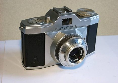 Name: Pentona technische Daten: Hersteller: VEB Carl Zeiss Jena Gebaut: 1956 Format: 135er Film 24X36 Objektiv: Trioplan 1:3,5/45 Belichtungszeiten: 1/30, 1/60, 1/125, B Beschreibung: Sucherkamera Zubehörschuh Blitzbuchse Drahtauslöseranschluss Stativanschluss