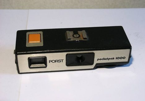 Name: Porst pocketpak 1000 technische Daten: Hersteller: Porst Gebaut: 1978 Format: 13X17 Spezial Pocketfilm Objektiv: Fixfokus Verschluss: einfach Beschreibung: Zubehörschuh mit Mittenkontakt Trageschlaufe
