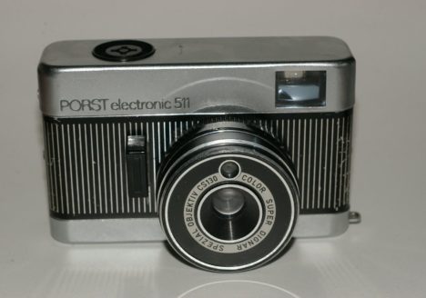 Name: Porst electronic 511 technische Daten: Hersteller: Hans Porst AG, Nürnberg Gebaut: 1968 Format: Kassette 28X28 Optik: Super – Dignar Spezial Fixfokus Verschluss: Elektronik Beschreibung Schnellspannhebel Blitzwürfel Batterien 2X Knopfzellen Drahtauslöseranschluss Stativanschluss