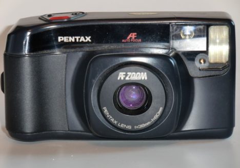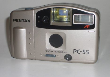 Name: Pentax PC-55 technische Daten: Hersteller: Pentax Asahi Optical Co.,Tokio Gebaut: ca.1988 Format: 24X36 Sucherkamera Objektiv: Zoom 38-60mm/f=4,5-6,7 Verschluss: fest 1/30-1/250 elektronischer Zentralverschluss Beschreibung: Motortransport automatisch Autofokus Messfeld, Infrarot Messung Blitzlicht automatisch zuschaltend…