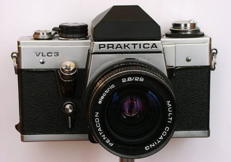 Name: Praktica VLC3 technische Daten: Hersteller: VEB Pentacon Dresden Gebaut: 1978 bis 1981 Format: 135er Film 24X36mm Schlitzverschluss: Metalllamellen 1 bis 1000, B, Blitz Objektiv: Wechseloptiken M42 (electric) Beschreibung: Einäugige Spiegelreflexkamera Metalllamellenschlitzverschluss…
