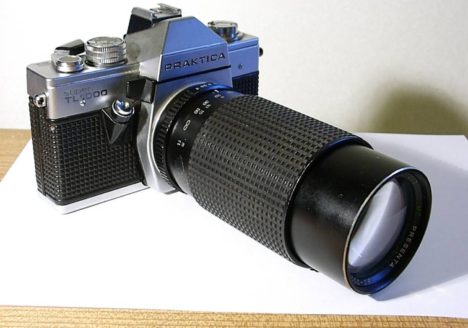 Name: Praktica Super TL1000 technische Daten: Hersteller: VEB Pentacon Dresden Gebaut: 1980 bis 1984 Format: 135er Film 24X36mm Schlitzverschluss: Metalllamellen 1 bis 1/1000, B, Blitz Objektiv: Wechseloptiken M42 Beschreibung: Einäugige Spiegelreflexkamera Metalllamellenschlitzverschluss…
