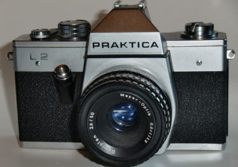 Name: Praktica L2 technische Daten: Hersteller: VEB Pentacon Dresden Gebaut: 1969 bis 1970 Format: 135er Film 24X36mm Schlitzverschluss: Metalllamellen 1 bis 1/1000 Objektiv: Wechseloptiken M42 Beschreibung: Spiegelreflexkamera Zubehörschuh mit Mittenkontakt automatisch zurückstellendes…