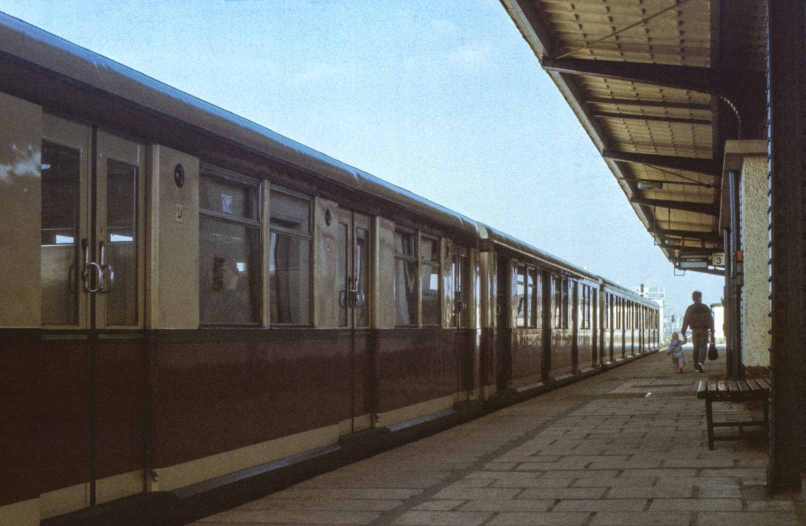 S-Bahn Zug am Bahnhof Plänterwald – Ende 1980